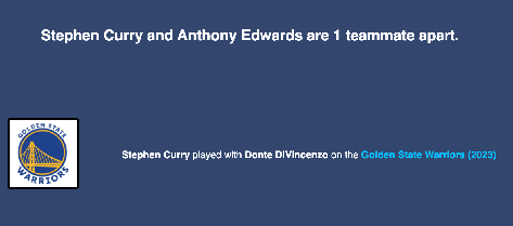 Inspired by Six Degrees of Kevin Bacon, this interactive project lets users select any two players in NBA history and see how they’re connected through shared teammates.